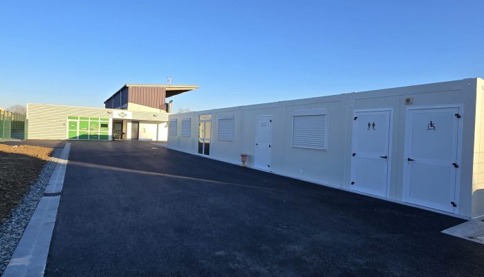 - Mise en place de modulaires pour la création d’un club house partagé par 6 associations (Volley, Football, Zumba, Pétanque, Running, GRL), d’un bureau pour les animateurs sportifs et de toilettes publiques.